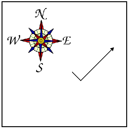 but the lines are mixed up. The program should do all necessary set-up: import the turtle module, get the window to draw on, and create the turtle. Remember that the turtle starts off facing east when it is created. The turtle should turn to face south and draw a line that is 150 pixels long and then turn to face east and draw a line that is 75 pixels long. We have added a compass to the picture to indicate the directions north, south, west, and east.