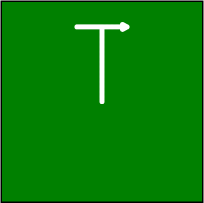 first-turtle10: The following program uses a turtle to draw a capital T in white on a green background as shown to the left,